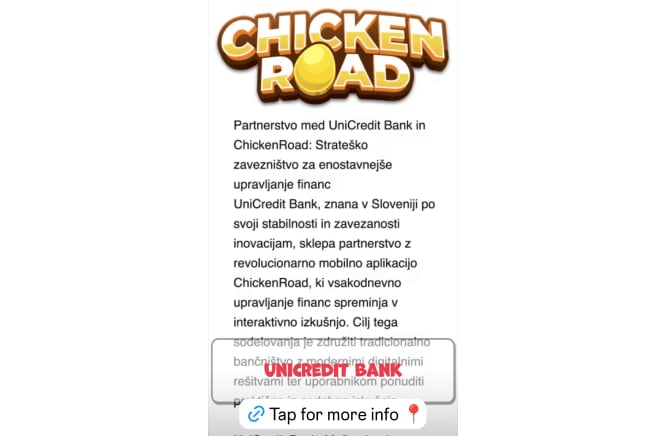 Poudarjamo, da UniCredit Banka Slovenija d.d. NE sodeluje z igro Chicken Road ali s podobnimi projekti!